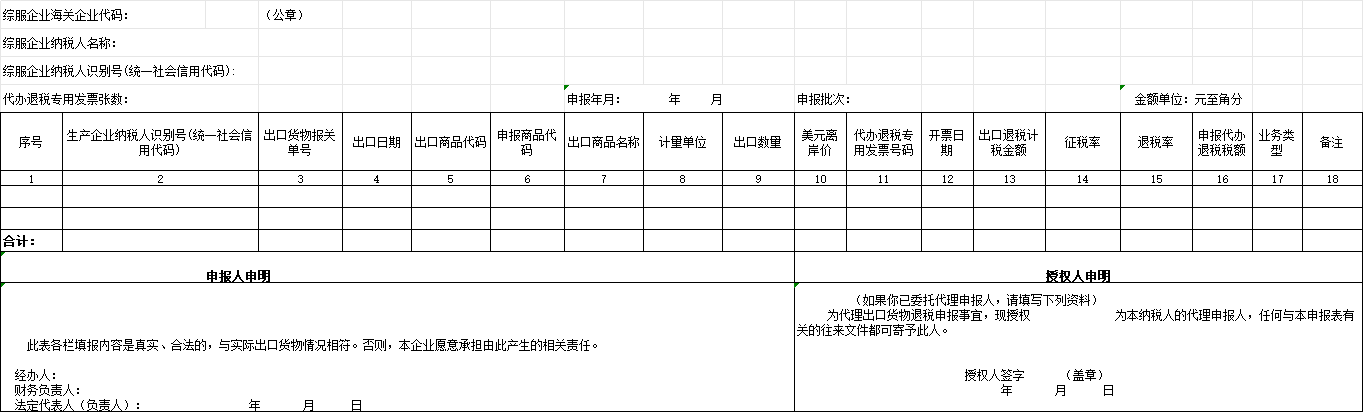 外贸综合服务企业代办退税申报表